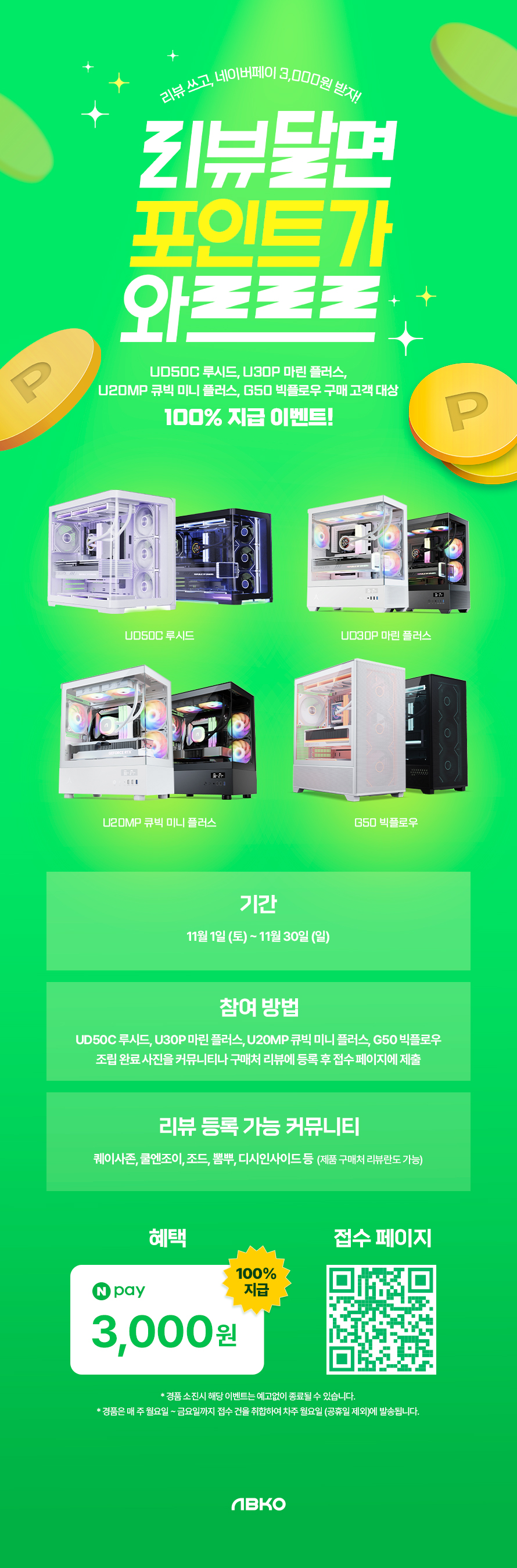 앱코 G50 빅플로우 MESH ARGB BTF (블랙)