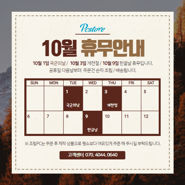 피씨스토어 10월 휴무 안내