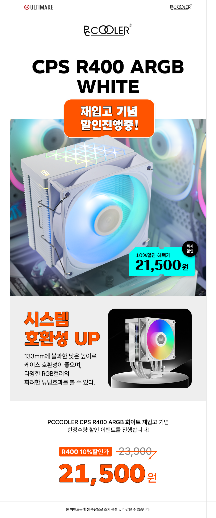 PCCOOLER [재입고기념 할인] CPS R400 ARGB (화이트)