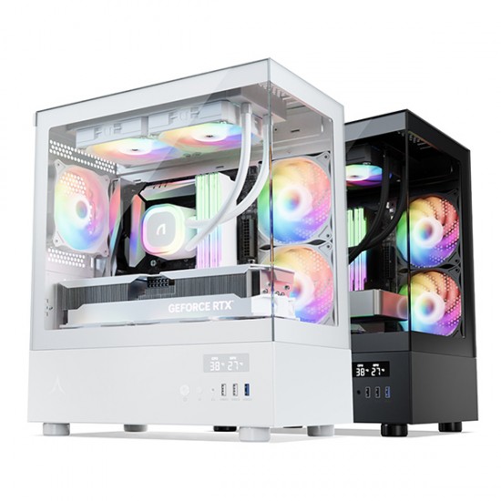 M-ATX 케이스 / 지원보드규격:M-ATX,M-ITX / VGA 길이:350mm / CPU쿨러 높이:165mm / 미니타워 / 파워미포함 / [패널] / 전면 패널 타입:강화유리 / 측면 패널 타입:강화유리 / [쿨러/튜닝] / 쿨링팬:총3개 / LED팬:3개 / 후면:120mm LED x1 / 내부 측면:120mm LED x2 / [크기] / 너비(W):212mm / 깊이(D):360mm / 높이(H):453mm / [호환성] / 파워 장착 길이:180mm / 파워 위치:하단후면 / [부가기능] / LED 색상:RGB